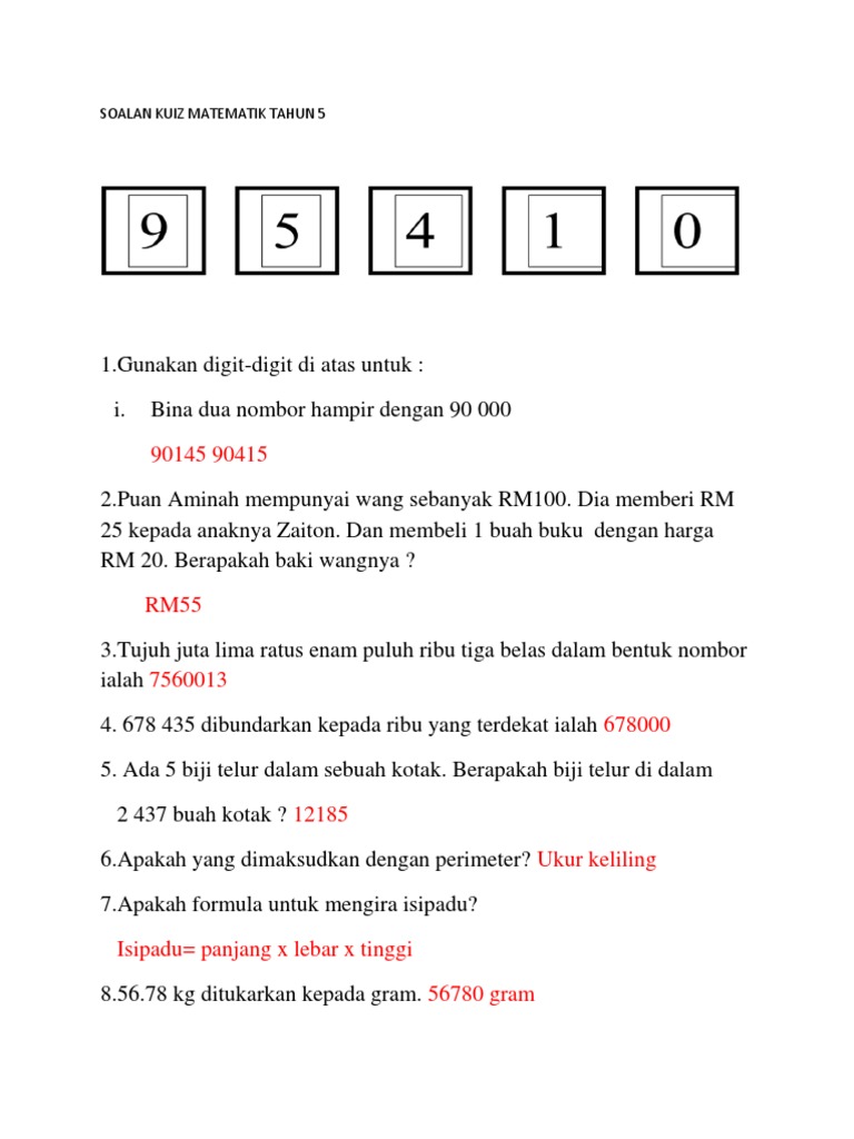 Himpunan Kuiz Matematik Tahun 5 Yang Berguna Dan Boleh Di Download Dengan Segera Pekeliling Terbaru Kerajaan